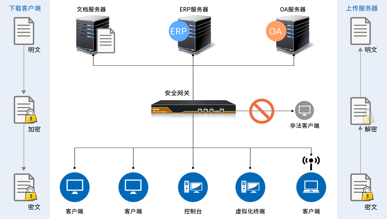 安全网关结合IP-guard加密客户端,对服务器重要数据进行保护